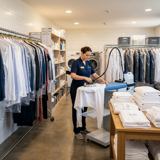 Servicio de lavandería y tintorería express. Recogida y entrega en su habitación en menos de 4 horas.